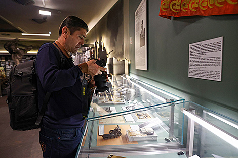 20 сентября, Минск /Корр. БЕЛТА/. Участники международного медиатура журналистов информационных агентств стран СНГ "Дорогами Победы" презентовали Белорусскому государственному музею истории Великой Отечественной войны копию одного из советских агитационных плакатов с призывами к защите Родины, сообщает БЕЛТА.