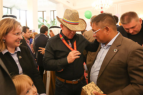 "Я благодарен вам за то, что вы откликнулись на наше приглашение. Когда мы в прошлом году отмечали день белорусской вышиванки, кто-то из вас - послов - предложил, чтобы мы в следующий раз собрались и отметили этот день каждый в своей национальной одежде. Так и родилось название этого фестиваля "В Беларуси как дома". Спасибо вам за то, что многие из вас также предлагают нам отведать что-то из вашей национальной кухни", - сказал министр.