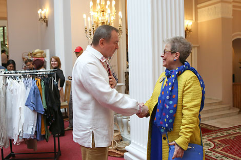Вниманию гостей была представлена выставка рисунков, сделанных детьми представителей дипкорпуса и МИД Беларуси в рамках конкурса "Цвета и символы моей Родины". Продемонстрированы коллекции современной дизайнерской национальной одежды, белорусские сладости, включая линейку шоколада "Президент Эксклюзив". Работала и детская зона.