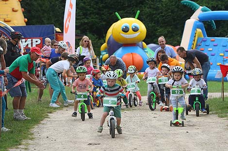 Самым взрослым участникам было за 70 лет, минимальный же возраст велосипедистов не ограничен. Для самых маленьких устроили веселый заезд на 100 метров: некоторые из его участников сели на велосипед тогда, когда начали ходить. Двухлетний минчанин Егор Новогран преодолел дистанцию на беговеле. В качестве пассажира появился он и на взрослой дистанции. Папа Александр и мама Лида на "Суседзi" приезжают во второй раз. "Едем на канал на несколько дней. Места здесь красивые, рыбалка хорошая - отличный вариант для активного семейного отдыха", - отмечают они.