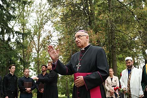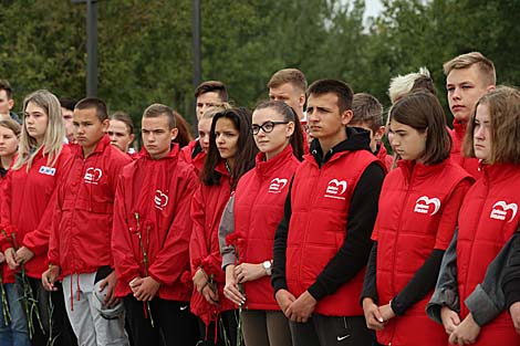 Активисты союза молодежи трудились дружно и быстро справились с работой. Ровно в полдень у центрального монумента "Врата Памяти" состоялся митинг с участием волонтеров, руководителей и представителей основных конфессий, а также посольств Германии и Австрии в Беларуси.