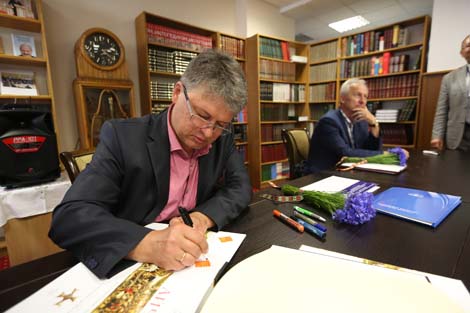 20 июня, Минск /Корр. БЕЛТА/. Открытие выставки иллюстраций "Маляўнічая гісторыя Радзімы" Павла Татарникова состоялось в Президентской библиотеке Беларуси, передает корреспондент БЕЛТА.