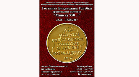 21 августа, Минск /Корр. БЕЛТА/. Выставка "Минску 950...", которая откроется 25 августа в Гостиной Владислава Голубка, представит экспонаты из частных коллекций, сообщили корреспонденту БЕЛТА в Национальном историческом музее.