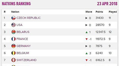 25 апреля, Минск /Корр. БЕЛТА/. После победы над теннисистками Словакии в Кубке Федерации сборная Беларуси поднялась на 3-е место в мировом командном рейтинге, сообщает корреспондент БЕЛТА.