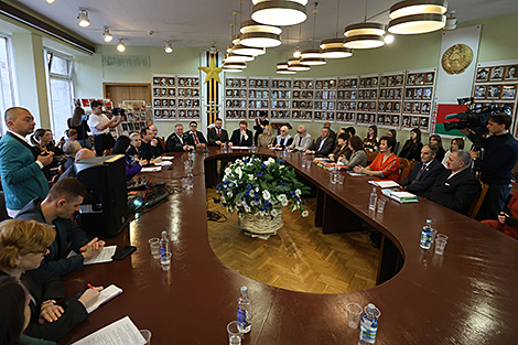 Председатель Союза писателей Беларуси Александр Карлюкевич добавил, что многие белорусские писатели работали в кинематографе, участвовали в создании художественных и документальных фильмов. Особенно хорошо это видно по фильмам, связанным с темой Великой Отечественной войны. В их разработке активно участвовали белорусские литераторы. Начало было положено уже в 1940-е годы, и те произведения, которые создали не только Василь Быков, Виктор Казько и Алесь Адамович, но и их предшественники, нашли свое воплощение в кино. Созданные тогда художественные продукты были сотворчеством людей разных творческих направлений, работавших и в кино, и в литературе. Это очень важно и значимо, особенно сегодня.