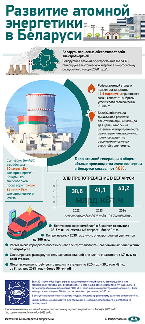 Отвечая на вопрос, появились ли уже более продвинутые атомные технологии, к которым присматривается Беларусь с учетом обсуждаемой возможности строительства в стране еще одной АЭС, министр сказал: "Надо прямо сказать, что в Беларуси реализован самый безопасный проект АЭС поколения 3+. Это самый успешный проект у "Росатома", и в настоящее время более совершенных технологий, масштабируемых для реализации на внешнем периметре, нет. Поэтому мы считаем, что этот уровень безопасности, которого мы достигли, очень высокий".