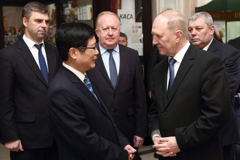 Губернатор сегодня принял участие в открытии выставки гродненской художницы Марины Эльяшевич, которая работает в технике китайской живописи. В областном центре также состоялся концерт государственного ансамбля песни и танца провинции Ганьсу Китая под названием "Веселый праздник Весны - 2017". Данные мероприятия проводятся к 25-летию установления дипломатических отношений между Беларусью и Китаем и стали своеобразным Днем китайской культуры в Гродно. Участие в них также принял Чрезвычайный и Полномочный Посол КНР в Беларуси Цуй Цимин.