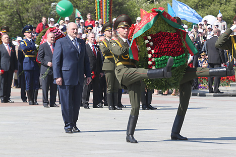 Глава государства подчеркнул, что за весь период суверенной истории Беларуси в стране не было разрушено ни одного памятника, никому не было позволено надругаться над памятью героев. "Мы боролись за правду о войне. За правду о вашем подвиге. Нам не стыдно перед вами, смотрящими на нас с небес, перед ветеранами Великой Отечественной, с тревогой наблюдающими за безумцами, толкающими планету к новой мировой войне, - отметил белорусский лидер. - Как и 71 год тому назад, мы уверены: жизнь, справедливость победят варварство и смерть!".