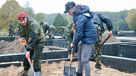 Сегодня отряд "Хатынь-2022" дислоцировался на территории мемориального комплекса и продолжил начатую им 29 сентября работу по благоустройству реконструируемых объектов "Хатыни".