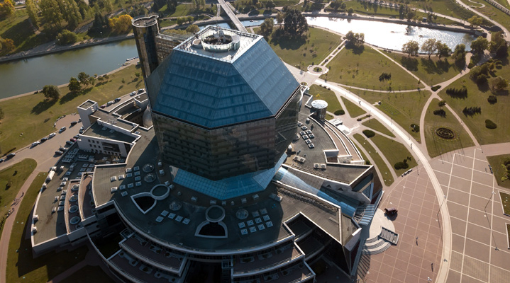 Одно из 50 самых необычных сооружений мира по версии сайта Village of Joy, отмеченное также в рейтинге фантастических архитектурных работ американского издания Flavorwire и книге "100 самых удивительных достижений современной архитектуры" – белорусский "алмаз" знаний. Здание библиотеки насчитывает 23 этажа и обзорную площадку на высоте 73 метров, собрание литературы – 9 млн экземпляров, а огромный светодиодный экран, в который превращается библиотека в вечернее время – более 4500 лампочек.