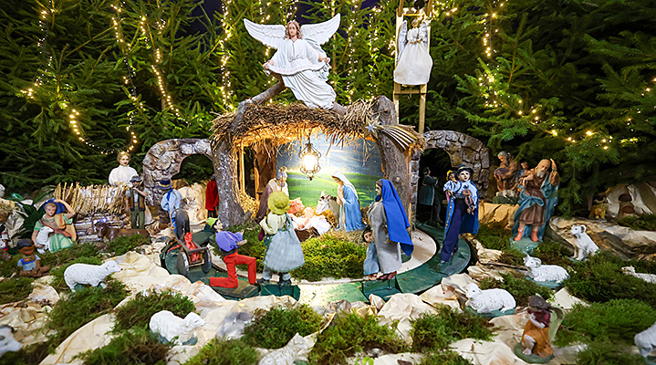 Например, в костеле Девы Марии Ангельской (Францисканском костеле) Гродно каждый год собирают уникальный механический рождественский вертеп – самый большой и старый из сохранившихся в Беларуси. Религиозная инсталляция показывает знаменитый сюжет – Вифлеемскую пещеру, где появился на свет младенец Иисус, склонившихся над ним родителей Марию и Иосифа, скромные ясли, пастухов и животных, волхвов и рождественскую звезду. Много и других персонажей – артистов и музыкантов, которые, по задумке, восхваляют рождение Иисуса. А главное, герои словно оживают, когда включается механизм.